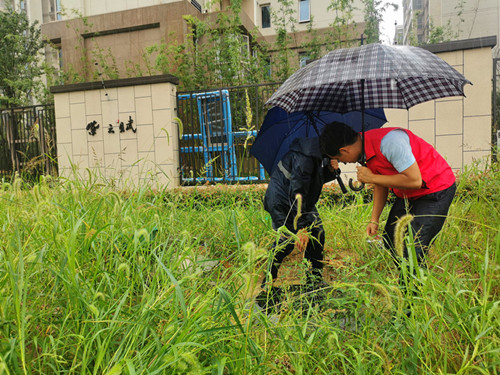 7月10日,社區工作人員在排查中發現天津路與紫云路交口多處窨井下水不暢導致大面積積水,王勁松考慮到新四中第二天將開展新年度的招生考試,立即帶領著社區所有工作人員連夜疏通管道,清理雜草,排除積水,確保道路安全無隱患。