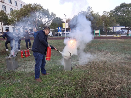 為進一步加深參訓(xùn)人員對消防安全知識的理解、熟練掌握消防器材使用方法,教員就滅火器、消防水帶、水槍等常見滅火器材的使用方法進行了現(xiàn)場演示。“手提式滅火器使用即看壓力表指正是否正常、提起滅火器、拔掉安全銷、瞄準(zhǔn)火苗根部、壓下手柄……”參訓(xùn)人員還在教員的指導(dǎo)下參與了實際操作。