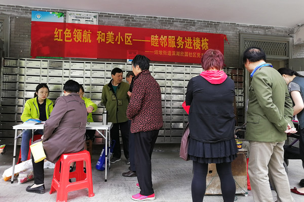 為深入推進紅色領航和美小區建設,便利居民生活,4月18日上午,煙墩濱湖欣園社區黨支部在濱湖欣園小區27號樓組織開展公益服務進樓棟活動。