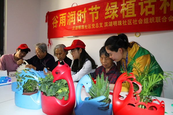 為增進鄰里共識,促進黨員與居民的交流溝通,黨群攜手共同推進紅色領航和美小區建設,4月19日下午,濱湖明珠黨總支、社會組織聯合會聯合北京環衛在10號樓棟黨建服務點開展了一場“谷雨潤時節,綠植話和美”主題活動。樓棟的黨員積極亮明身份,與樓棟居民和大學生志愿者共同參與此次活動。