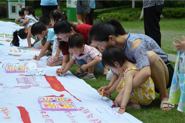 本次活動吸引了轄區25組青少年家庭參加?;顒?/span>從愛國情懷、垃圾分類、防電信詐騙、反邪教等多個主題切入。活動現場,大家集體商量、分工合作,三五成群趴在一起完成著選定的主題。畫卷兩邊,王利小朋友和鄭民小朋友兩人合作完成天安門和國旗,鮑鳴小朋友和他的好朋友在畫垃圾桶和各類果皮,五年級的趙凡小朋友在白卷上認真的寫著:熱烈慶祝中華人民共和國建國70周年……孩子們用手中稚嫩的畫筆,一筆一劃繪制著自己對祖國的熱愛。