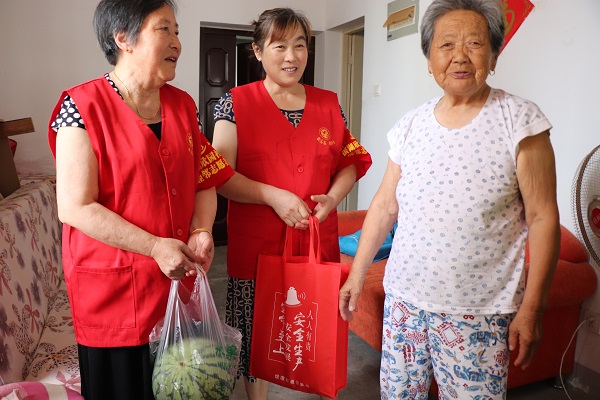 老黨員婁祥德是欣園小區13棟黨小組長,他帶領關愛小分隊來到獨居老人朱道學家中,婁組長將裝有人丹、風油精、花露水、綠豆、西瓜等防暑降溫物資的“清涼禮包”送到老人手中,叮囑老人夏季高溫要減少外出,生活上有需要幫助的可隨時聯系樓棟志愿者。此外,參加關愛活動昆侖燃氣和欣園衛生站志愿者還為老人送去了“安全禮包”和“健康禮包”,昆侖燃氣志愿者將老人家中的燃氣管道及灶具進行全面檢查,并交代老人夏季安全用氣常識,強化安全意識;醫療志愿者為老人測量血壓,進行身體檢查,囑咐老人夏季用藥、防暑及飲食等方面的注意事項。隨后,樓棟志愿者們還走訪了部分殘疾老人和困難老黨員家庭,為他們送去了一份份關愛。