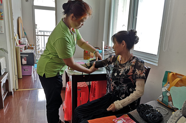 王立銀是濱湖欣園小區17棟黨小組組長,他和居民樓棟長周鳳一起,帶著大米、食用油等慰問品,來到空巢老人聶爾志夫婦家中。聶爾志夫婦無子女,愛人患有癌癥,家庭經濟困難。一邊志愿者為老人測血壓,幫助老人整理房間、打掃衛生,另一邊王組長陪空巢老人聊天,詳細詢問兩位老人的身體狀況,并為老人送上了特制的“暖心卡”。“暖心卡”上注明了本棟樓的黨小組長的基本信息,社區開展的為老便民服務項目,社居委及物業的聯系電話等等信息。王組長耐心地向老人講解了“暖心卡”上的信息,并告訴老人:“如果需要幫助,可以隨時撥打自己的電話,自己將帶領本樓棟的熱心黨員和居民一起,為老人提供貼心的服務,讓老人感受到鄰里互助的溫暖。”。此次活動全部由所在樓棟的黨小組組長帶隊開展,同步在6棟樓進行,為轄區特殊老人送去一份貼心的關愛。