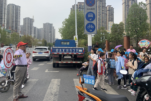 護(hù)學(xué)隊(duì)伍由五名黨員骨干和四名居民骨干組成。五名黨員骨干婁祥貴、婁祥德、聶宗發(fā)、楊金臺(tái)和王正生均擔(dān)任濱湖欣園小區(qū)的樓棟黨小組組長(zhǎng),四名居民骨干黃建朝、程安福、朱道來(lái)和胡召典也都是居民樓棟長(zhǎng)。每逢下午放學(xué),無(wú)論天氣狀態(tài)如何,他們都會(huì)準(zhǔn)時(shí)出現(xiàn)在四川路、杭州路、煙墩路等四個(gè)人流量大的交通路口,左手做著交通指示,右手舉著交通指示牌,及時(shí)叫停車輛,使學(xué)生們井然有序的穿過(guò)馬路,為過(guò)往的學(xué)生和家長(zhǎng)的安全保駕護(hù)航,成為一道亮麗的城市風(fēng)景線。許多過(guò)往的行人和學(xué)生家長(zhǎng)紛紛向護(hù)學(xué)的黨員和居民骨干們豎起了大拇指,“以前總是為孩子的上學(xué)放學(xué)安全擔(dān)心,現(xiàn)在好了,有了護(hù)學(xué)崗,我們做家長(zhǎng)的就放心了。”一位家長(zhǎng)這樣說(shuō)道。作為護(hù)學(xué)隊(duì)的骨干成員,黨員楊金臺(tái)表示:“孩子是祖國(guó)的未來(lái),是家庭的希望,自己和其他的黨員同志,定會(huì)充分發(fā)揮共產(chǎn)黨員的先鋒模范作用,站好護(hù)學(xué)崗,讓每一個(gè)孩子都能平安上學(xué)、平安回家。”這是一個(gè)老共產(chǎn)黨員的承諾,也是他們用實(shí)際行動(dòng)來(lái)踐行的初心和使命。