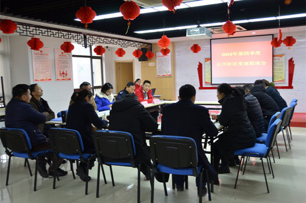 會上,包河區煙墩街道云川社區黨支部書記首先向共建單位詳細介紹了社區黨建工作相關情況,協商落實第四季度的工作安排,并就目前社區存在的問題與各共建單位進行交流和座談,同時對春節期間安全保障工作提出了要求,希望今后共建單位能進一步與社區加強聯系,加強合作。與會人員暢所欲言,將轄區的實事放到會上來討論,為社區建設獻計獻策、共謀發展。