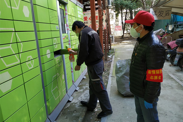 疫情發(fā)生期間,各小區(qū)實行封閉式管理,人員進出需要嚴格把控。各小區(qū)每戶居民每六天領(lǐng)取三張家庭物資出入采購證,憑證出入。在這種情況下,網(wǎng)上購物便成了居民的主要采購方式??吹娇爝f小哥送來的快遞,在濱湖惠園小區(qū)下沉的黨員干部周哲看在眼里急在心里,每份快遞是否消過毒?在運輸途中是否存在交叉感染?想到這里,周哲便跟快遞小哥協(xié)商,特殊時期,投放到小區(qū)快遞柜里的所有快遞都必須進行二次消毒。周哲當起了快遞二次消毒監(jiān)督員,為保障轄區(qū)居民健康安全提供強有力的保證。