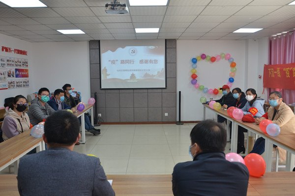 歡送活動中,來自包河區煙墩街道濱湖惠園社區的物業工作人員、社居委工作人員、小區居民代表們為14名下沉黨員獻上飽含深情厚誼的束束獻花。“謝謝您們的付出與幫助,為我們戰勝疫情增添了信心和力量!”書香門第物業工作人員夏桂芳說道。隨后,包河區煙墩街道主任科員王方平與濱湖惠園社區黨支部書記張世偉一同為14名市直單位下沉黨員送上感謝信,感謝他們在疫情防控期間不計個人安危得失,舍小家為大家,始終把人民生命健康放在第一位。市直單位黨員下沉包河區煙墩街道濱湖惠園社區疫情防控點臨時黨支部書記周哲表示:“援助工作雖已結束,但疫情還沒有結束,我們回到自己的工作崗位上會繼續為疫情防控貢獻自己的力量,我堅信,冬已去,春可期,疫情一定會被戰勝!”