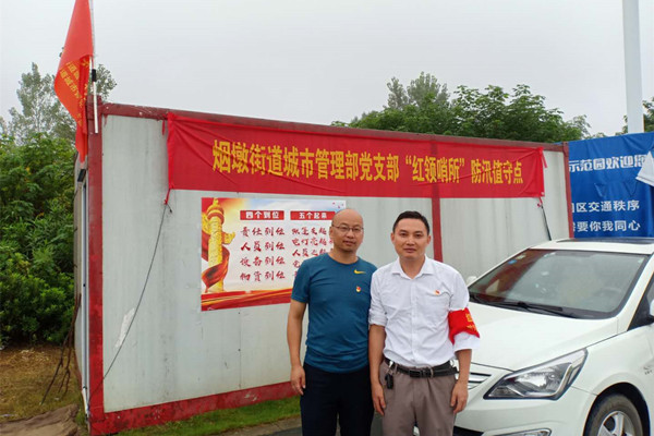 煙墩街道城市管理部黨支部主動擔當,以“紅領哨所”為陣地,發揚黨員先鋒示范作用,守初心,擔使命,全力筑牢“紅色堤壩”,確保安全度汛。
