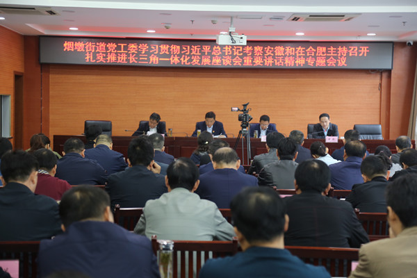 定方案,專題培訓(xùn)全覆蓋。煙墩街道根據(jù)有關(guān)要求,制定并向街屬各社區(qū)、村(工作站)、欣誠公司、轄區(qū)各非公企業(yè)黨組織印發(fā)了《關(guān)于學(xué)習(xí)貫徹習(xí)近平總書記考察安徽和在合肥主持召開扎實推進長三角一體化發(fā)展座談會重要講話精神專題學(xué)習(xí)培訓(xùn)的通知》,明確專題培訓(xùn)的時間、對象、方式及要求。街道黨工委邀請合肥市委講師團張步根教授作《牢記習(xí)主席諄諄教導(dǎo),踐行大發(fā)展目標任務(wù)》專題講座,街道領(lǐng)導(dǎo)班子成員,機關(guān)全體工作人員,各社區(qū)、村(工作站)黨組織第一書記、書記,欣誠公司黨總支書記參會學(xué)習(xí),轄區(qū)各社區(qū)、村(工作站)其他工作人員通過“學(xué)習(xí)強國”視頻電話會議形式同步學(xué)習(xí)。街道黨政領(lǐng)導(dǎo)班子、街道部門正副職、居村書記等7名代表,圍繞“緊扣一體化和高質(zhì)量兩個關(guān)鍵詞”“加強生態(tài)環(huán)境保護”“不斷提高城市治理水平”“加強民生保障和困難群眾幫扶”等習(xí)近平總書記考察安徽時的重要論述,結(jié)合工作實際作研討發(fā)言。