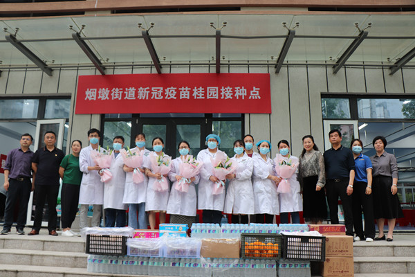 愛心企業(yè)為煙墩街道新冠疫苗桂園接種點(diǎn)的醫(yī)護(hù)人員送來了礦泉水、水果、牛奶、餅干、面包、速食品等滿載謝意的物資,還向每位白衣天使敬獻(xiàn)了鮮花,向她們的辛勤付出表示感謝,并送上了節(jié)日的祝福和問候。“感謝你們的辛苦付出,每天要接種幾百上千人,忙的都顧不上吃飯,我代表轄區(qū)居民向你們道一聲辛苦啦!”濱湖欣園社區(qū)黨支部書記董建華向醫(yī)護(hù)人員這樣表達(dá)著謝意。