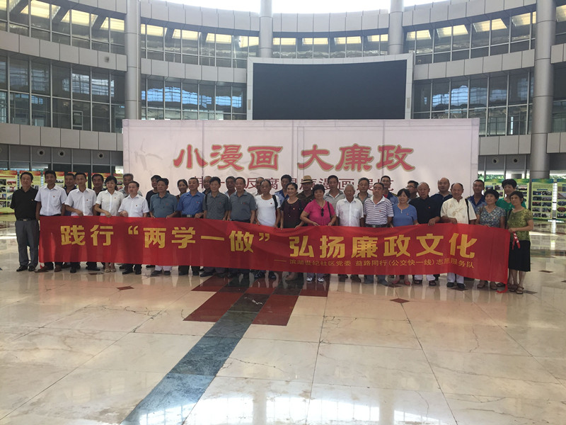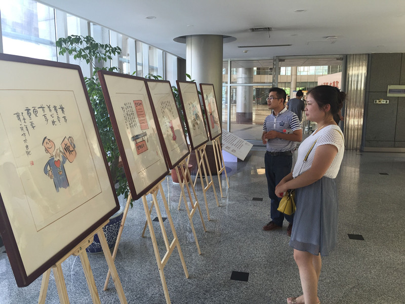 8月11日,濱湖世紀社區和園網格黨員干部在包河區政府一樓大廳觀看了由市紀委主辦的反腐倡廉漫畫展。