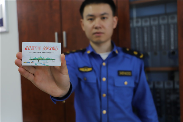 “斑馬線前,文明禮讓;文明出行,遵章守法”,區(qū)城管執(zhí)法大隊黨支部青年黨員熊志欽剛剛拿到支部印制的溫馨小卡片,看著上面的文字,細細閱讀,“司機避讓行人,行人遵守交通信號,卡片上都明確標注車輛和行人的出行準則,斑馬線是行人和司機的生命線,我們黨員更要帶頭遵守”。據悉,區(qū)城管執(zhí)法大隊黨支部印制了200余張溫馨提示卡,發(fā)放到每一名黨員、職工手中,做到宣傳全覆蓋,確保人人知曉,所有執(zhí)法車輛嚴格執(zhí)行“禮讓斑馬線”,號召職工私家車積極參與,黨員同志率先垂范。