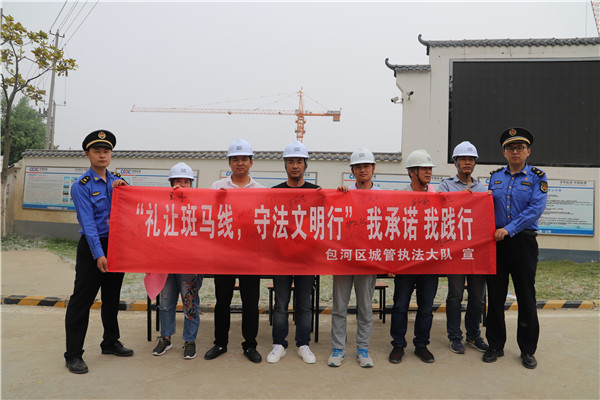 針對渣土運輸車輛,區(qū)城管執(zhí)法大隊黨支部在轄區(qū)休寧路某工地發(fā)起“禮讓斑馬線 守法文明行”承諾簽名活動,渣土車使用單位、渣土車駕駛人員和城管隊員們積極參與其中,響應禮讓斑馬線的號召,引領渣土車文明出行新風尚。