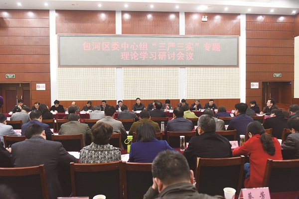 11月18日至19日,中共包河區委中心組“三嚴三實”專題理論學習研討(擴大)會議召開。會議主要任務是,圍繞“嚴以用權,真抓實干,實實在在謀事創業做人,樹立忠誠、干凈、擔當的新形象”的主題展開研討。
