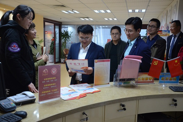 4月6日下午,區委常委、組織部長、統戰部長施詠康來到濱湖世紀社區調研指導黨建工作,區委組織部副部長王振羽、濱湖世紀社區黨委書記束紅英等相關人員陪同。