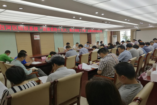 5月20日下午,包河區組織系統“迎接黨的十九大,做合格組工干部”主題實踐活動動員會在區政務會議中心二樓9號會議室召開。區委組織部全體黨員,各街道、鎮、濱湖世紀社區、方興社區、包河經開區、濱湖功能區黨(工)委分管負責人、組織員,區直各系統黨(工)委分管負責人和區屬國有企業黨組織分管負責人參加會議。會議由區委組織部常務副部長李春主持,區委常委、組織部長、統戰部長施詠康出席會議并講話。