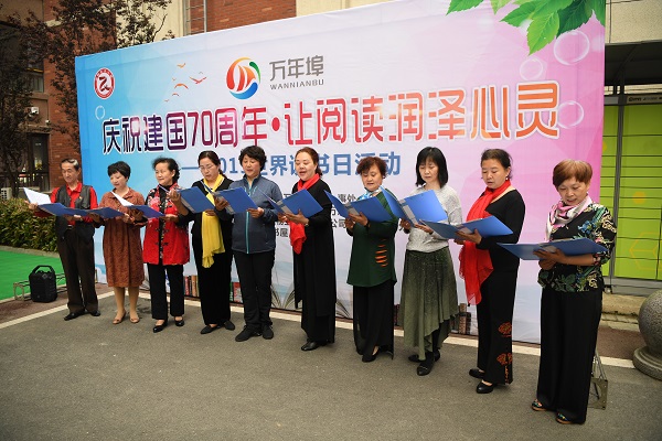 “春眠不覺曉,處處聞啼鳥。夜來風雨聲,花落知多少”,隨著音樂的響起,筑夢書屋“夢之聲”國學合唱團改編的古詩詞歌曲《春曉》拉開了此次活動的序幕,聲情并茂的詩文合唱博得陣陣掌聲。隨后,配樂誦讀《我和我的祖國》將活動引向高潮,領讀人飽含熱情,經典歌詞也引發全場居民共同參與齊聲誦讀,每個人都帶著喜悅和微笑,幸福感油然而生,不僅表現了萬慈居民對世界讀書日的喜愛,更表達了大家對建國70周年濃烈深厚的祝福。