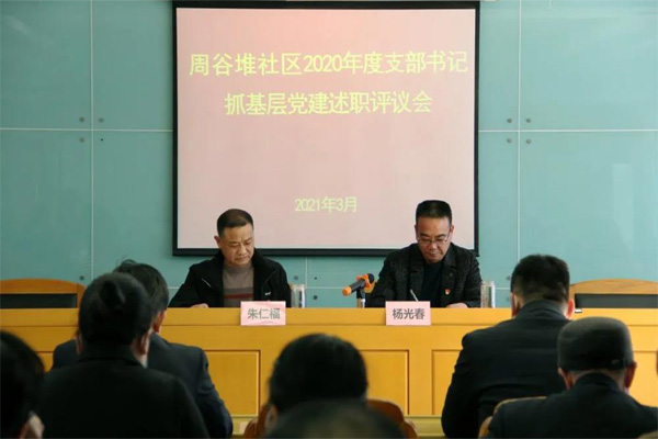 3月4日下午,周谷堆社區召開2020年度黨支部書記抓基層黨建工作述職評議會。社區領導班子成員、各支部書記、居屬部門負責人、部分 “兩代表”參加會議。