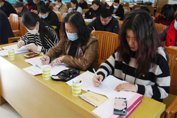 述職結束后,與會人員現場填寫評議測評表,對16個支部書記抓基層黨建工作情況進行了測評。