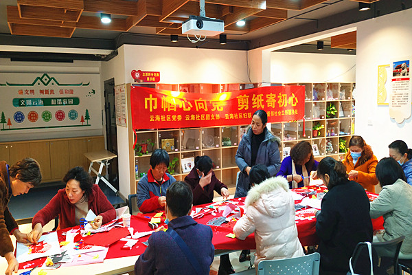 黨組織牽頭,婦女議事剪紙寄初心。社區婦女議事會在建黨百年來臨之際積極謀劃,轄區婦女同胞10余人在“一米陽光”黨群服務站開展憶黨史活動,巾幗志愿者宋阿姨向大家介紹了剪紙的由來和歷史,以及不同圖案對剪刀、紙張的要求,在大家的共同努力下,創作出了的“南湖紅船”、“一顆紅心向黨生”、“花好月圓”、“錦繡河山”等剪紙作品。