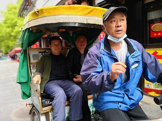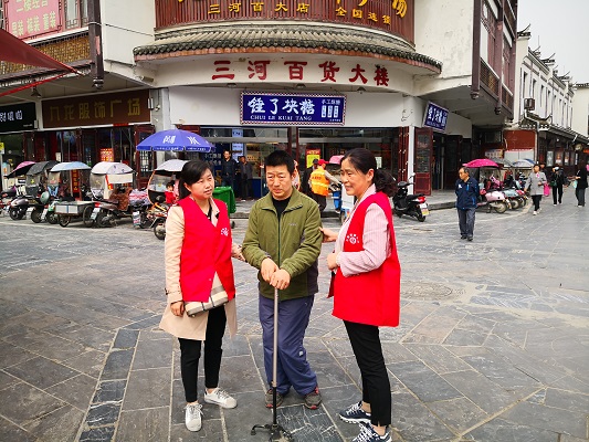 到了三河古鎮,胡玉琳馬上被古色古香的建筑吸引,雖然站不穩,但是他還是要求自己走一走,這讓志愿者們非常感動。為了方便讓胡玉琳游覽,志愿者特意租了一輛人力車,王世珍的丈夫陪著胡玉琳坐車,龔群和王世珍在車后跟隨。“我們當天租的人力車師傅正好是個隊長,看到玉琳這個情況,他一路邊騎車邊講解,為了照顧我們兩個跟在后面的女同志,特意騎的很慢,也是個熱心的大哥!”龔群回憶道。中午大家一起吃了飯,直到下午返回到郭永慧家。