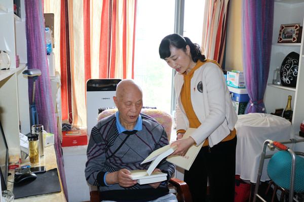 “我這輩子能活到現(xiàn)在,離不開(kāi)黨對(duì)我的幫助。黨的恩情,我一生都報(bào)不完。”陸祥云接過(guò)《論中國(guó)共產(chǎn)黨歷史》等黨史學(xué)習(xí)書(shū)籍時(shí)深情地說(shuō)道。他同時(shí)表示,雖然行動(dòng)不便,自己在家也仍然堅(jiān)持學(xué)習(xí)黨的知識(shí)和理論,每天堅(jiān)持讀報(bào)看新聞,關(guān)注黨和國(guó)家大事,一天都不落下。
