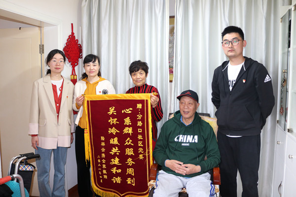 82歲的陸祥云老黨員在2008年因脊椎手術(shù)導(dǎo)致下半身永久性癱瘓,只能長(zhǎng)期坐輪椅。此后的幾年里,但凡有事,只要一個(gè)電話,社區(qū)志愿者就準(zhǔn)時(shí)地出現(xiàn)在了陸老的面前。這樣持續(xù)了一段時(shí)間后,為了讓老人不受顛簸之罪,社區(qū)黨委特意安排了社區(qū)醫(yī)生與老人對(duì)接,上門(mén)為其更換導(dǎo)尿管。之后,社區(qū)黨委又開(kāi)始張羅著為老人辦理殘疾證、去醫(yī)院鑒定傷殘等級(jí),還派了幾名工作人員全程陪同背上背下,老人也順利地拿到了每月的護(hù)理補(bǔ)貼。為了感謝社區(qū)黨委平時(shí)對(duì)自己的照顧和幫助,陸祥云和家人把一面寫(xiě)著“心系群眾服務(wù)周到關(guān)懷冷暖共建和諧”的錦旗送到了社區(qū)黨委副書(shū)記王慶安的手中。