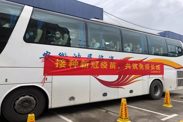 “大家不要急,帶好口罩,一個接一個下,按秩序排隊接種!”5月14日上午8點半,乘坐40余位外來務工人員的大巴車停在萬崗路上,社區志愿者正緊張地引導大家下車。五里廟擁有大量的務工人員,為了鼓勵他們接種疫苗,該社區特別租賃大巴,設立疫苗接種“愛心專車”。五里廟社區相關負責人表示,“每一班車我們都會安排專人協調對接,不僅僅在上車點,在疫苗接種點我們做好跟蹤服務。”連日來,五里廟“愛心專車”接送近20次,接送接種人員近千人,深受外來務工人員的好評,“一站式接種服務臺貼心了,真是太感謝了!”