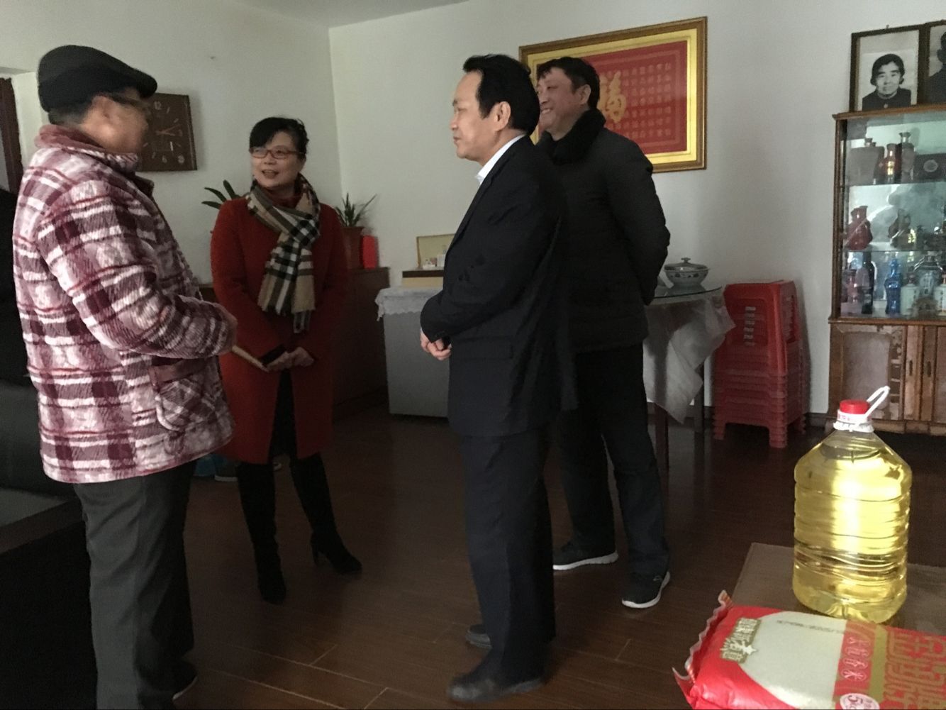 慰問人員冒著寒風(fēng)深入困難黨員家中走訪慰問,先后來到了居住在紫竹苑小區(qū)的梅榮昌、陳禮君和里店的葛守金三位黨員困難戶家中,為他們不僅分別送去了一桶油、一袋米和500元慰問金,還帶去了春節(jié)的祝福。