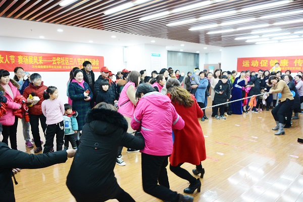 為積極踐行健康中國理念,開展社區趣味運動,包括拔河、三人兩足、踢毽子以及夫妻檔“背媳婦”、“你劃我猜”等,讓女性同胞在繁忙的工作之余,享受快樂時光,同時展現了女性積極向上的風采。居民桂愛林說:“社區組織的活動真好,給我們搭建這個平臺。真沒想到我們這個年齡還能參加運動會,大家在一起跑呀笑呀,真是身心都放松了,我運動,我健康,我快樂”。