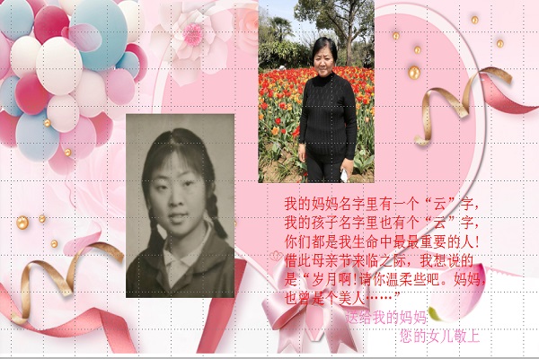 母親的青春紀念冊由社區十幾位母親的新老照片組成。幾十年前的她們很多都是黑白照片,有的扎著兩個小辮,有的簡單倚在一張桌前,還有的走在當年的街巷中,有青澀的美麗更有青春的風采。現在的她們鏡頭前雖有歲月的風霜,更有新時代的幸福微笑。丁阿姨說,“我們那時候照相,屋子里面就是一張椅子,屋子外面就是找一顆樹照照就好了,不像現在,走到哪里都有綠樹紅花。生活條件好了,小區環境也更美啦!”