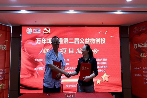 近日,合肥市包河區(qū)萬年埠街道第二屆公益微創(chuàng)投紅色項目發(fā)布會在街道辦事處舉行,街道機關(guān)第一黨支部參與公益微創(chuàng)投認領(lǐng)簽約儀式,認領(lǐng)了“惠民碼頭——社區(qū)共融”項目,與云華社區(qū)項目主體方簽訂合作協(xié)議,預(yù)開展一系列惠民志愿活動,充分發(fā)揮黨組織戰(zhàn)斗堡壘和黨員先鋒模范作用,讓黨員成為公益活動的行動者和倡導(dǎo)者。