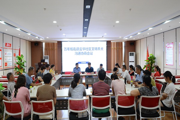隨著居民生活水平的不斷提高,飼養犬類等寵物的居民越來越多,一些不文明養犬的行為也不斷增多,不僅影響了轄區居民的正常生活、公共安全,還破壞了城市環境。為有效開展文明養犬行動的宣傳,提升養犬居民的文明意識,814日下午,萬年埠街道云華社區黨支部組織召開小區文明養犬黨群協商會議。社區民警、黨員代表、社區社會組織負責人、轄區物業公司負責人、安達志愿巡邏隊成員及養犬居民代表參加了此次會議。