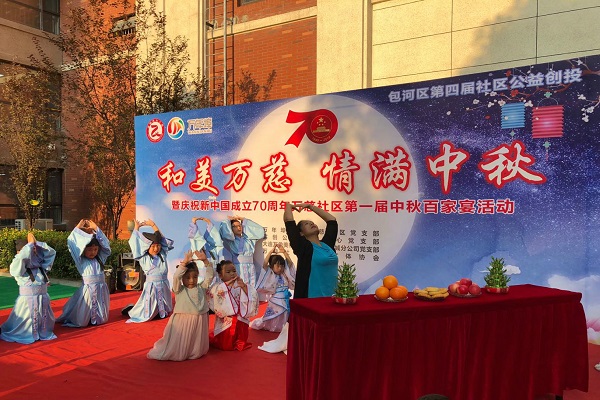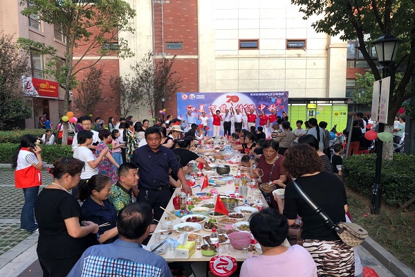 為增進(jìn)鄰里感情,喜迎中秋佳節(jié)。9月6日晚,萬年埠街道萬慈社區(qū)黨支部聯(lián)合實(shí)創(chuàng)公益發(fā)展中心黨支部、大連萬象美物業(yè)合肥萬達(dá)城分公司黨支部在攬湖苑小區(qū)一米陽光黨群服務(wù)站開展“和美萬慈,情滿中秋”暨慶祝新中國成立70周年中秋百家宴活動(dòng)。