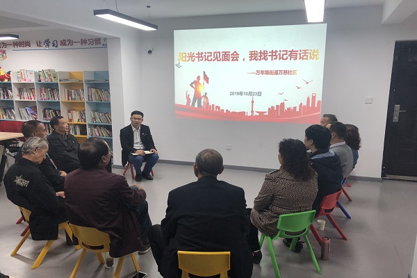 為進一步了解民情民意,掌握轄區群眾需求與困難,深入推進 “不忘初心、牢記使命”主題教育,萬年埠街道萬慈社區黨支部聯合實創公益發展中心黨支部于10月23日晚,在“一米陽光”黨群服務站組織開展以“陽光書記見面會,我找書記有話說"為主題的懇談會,旨在收集、聽取群眾意見和呼聲,討論和美小區建設,鼓勵居民積極發言,為和美小區獻言獻策。