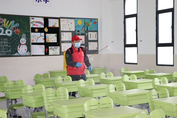 為了確保校園安全,黨員志愿者們在依次出示安康碼,測量體溫后有序進入校園。在校園里,黨員志愿者們全程佩戴口罩,身穿志愿者服裝,手拿消毒工具、拖把、掃把等,熱火朝天的穿梭在各個班級內外,進行著衛生清理及消毒的工作,不放過一個可能存在“安全隱患”的角落,以確保開學前各班級的衛生安全,讓同學們有一個健康安全的上課環境。本次參與志愿服務活動的黨員共計34人。