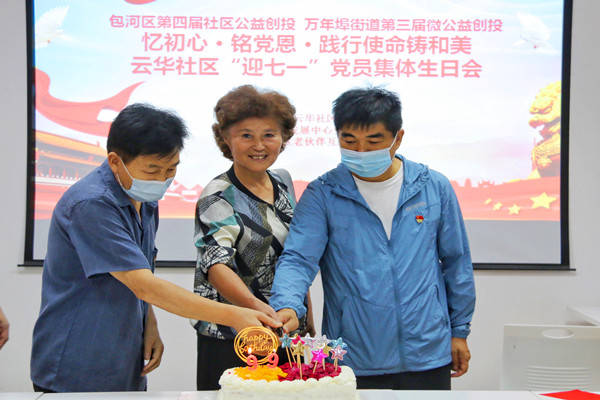 疫情防控期間,萬年埠街道云華社區黨員紛紛主動請戰,參與一線值守,為社區筑起一道堅不可摧的抗疫紅色防線。在“七一”黨的生日來臨之際,為慶祝建黨99周年,弘揚抗疫黨員的榜樣精神,6月28日上午,萬年埠街道云華社區黨總支聯合實創公益黨支部、社區婦聯,在云華社區臨湖苑C區一米陽光黨群服務站,開展“憶初心·銘黨恩·踐行使命鑄和美”迎七一黨員集體生日會,參與一線抗疫的黨員、社區老黨員度過了一個特殊意義的集體“政治生日”。