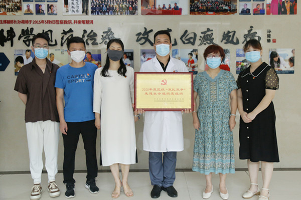 7月13日上午,同安街道黨工委委員程盈鳳一行,向合肥北大白癜風研究院附屬中醫院黨支部頒發包河區“雙比雙爭”先進社會組織黨組織獎牌。