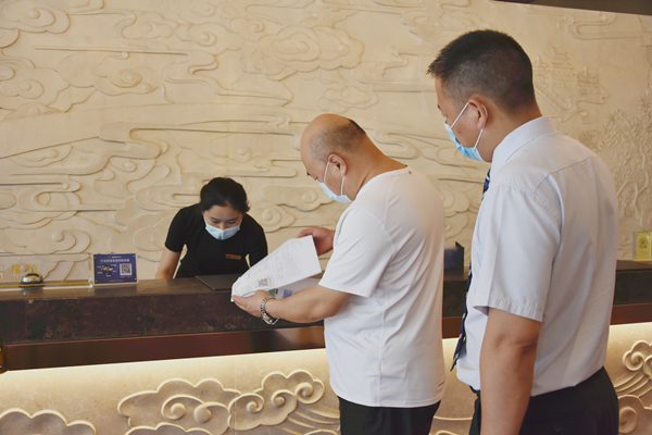 為強(qiáng)化防控措施,鞏固防控成果,為轄區(qū)居民筑牢安全防線,和園網(wǎng)格黨支部聯(lián)合轄區(qū)民警定期對(duì)轄區(qū)的酒店、賓館等重點(diǎn)場(chǎng)所進(jìn)行防疫督查。督查人員認(rèn)真查看重點(diǎn)場(chǎng)所的人員出入登記表、定期消毒記錄表、工作人員疫苗接種登記表等,要求對(duì)進(jìn)店顧客掃碼、測(cè)溫、戴口罩,認(rèn)真落實(shí)每一項(xiàng)防疫舉措。通過(guò)常態(tài)化的巡查,強(qiáng)化商家的防疫意識(shí)、落實(shí)防疫責(zé)任,為居民提供安全有序的生活環(huán)境。