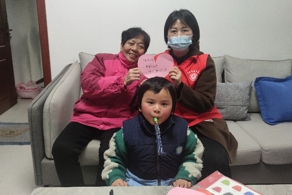 活動前期,社區青年志愿者通過電話及上門走訪、收集心愿貼紙等多種形式,及時了解轄區這些孩子們的所需所求。在小朋友家中,志愿者特意帶來了心愿清單中的羽絨服,這次寫心愿時她開心地說:“阿姨,我好喜歡你們來陪我玩呢,你們能不能每天都來!”簡單的話語感動到了志愿者,不管是從一個書包到一件玩具或是衣服,志愿者都用心對待,在這小小的征集過程充滿了愛和溫暖。