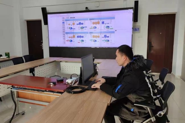 物業(yè)辦公室的一個(gè)藍(lán)色大屏幕上滾動(dòng)顯示著校園每個(gè)區(qū)域的實(shí)時(shí)用水量、用電量。這是一個(gè)由GIS信息系統(tǒng)(即:地理信息系統(tǒng))構(gòu)建的智慧物業(yè)管理服務(wù)平臺(tái),可以實(shí)現(xiàn)能耗可視化。