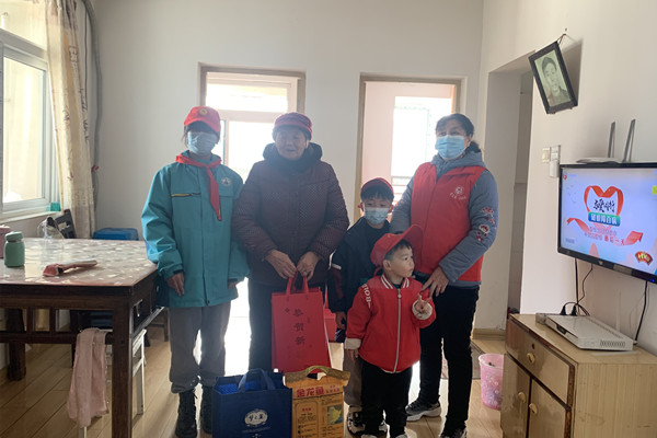 四名同學(xué)在家長們的陪同下,走進(jìn)欣園社區(qū)轄區(qū)濱湖欣園小區(qū)和中鐵濱湖名邸小區(qū)慰問1名孤寡老人和2名殘疾兒童,并送上了精心準(zhǔn)備的大米、食用油、牛奶、玩具、零食、水果等滿載愛心的年貨物資。每到一戶,家長們詳細(xì)了解孤寡老人和殘疾兒童的身體情況和生活情況及其存在的困難,鼓勵(lì)殘疾兒童父母要堅(jiān)定信心,相信通過堅(jiān)持不懈的康復(fù)治療,孩子們的狀況一定會(huì)越來越好。