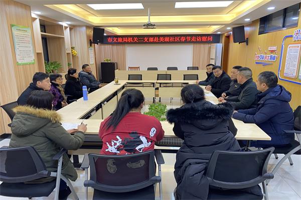 隨后,雙方黨組織和部分黨員群眾就組織建設、共建活動、報到服務等“四聯四定”工作進行了座談交流。座談會上雙方一致表示,過去的一年,雙方相互支持、合作共建,不僅豐富了共建活動內容,而且共同提升了黨建工作質量。市文旅局表示今后會繼續加強與美湖社區的聯系,及時了解社區居民困難,雙方還應進一步加強聯系,結合各自實際,共同謀劃好、開展好新年度黨建工作。