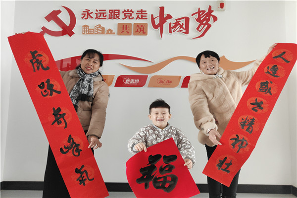 活動(dòng)現(xiàn)場(chǎng)墨香四溢,吸引了眾多居民前來(lái)圍觀。不一會(huì)兒,一副副春聯(lián)完成于書(shū)畫(huà)家筆下,各色字體承載著各式各樣的新春賀詞,一筆一劃都寄托著對(duì)新年的美好憧憬。有的居民在墨跡未干的春聯(lián)前駐足欣賞,有的站在周圍等書(shū)寫(xiě)好的春聯(lián)。現(xiàn)場(chǎng)濃濃年味撲面而來(lái)。居民王大姐帶著小孫子前來(lái),她表示,希望讓孩子從小就感受中華傳統(tǒng)書(shū)畫(huà)文化的藝術(shù)魅力,手寫(xiě)春聯(lián)也讓新年更有“年味兒”。