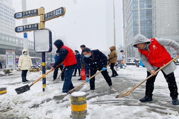 2月7日凌晨突降暴雪,整個合肥城市銀裝素裹、白雪皚皚。為保證轄區黨員群眾出行安全、道路通暢,富金商圈黨委聯合包河區煙草專賣局黨支部、合肥市中安公證處黨支部迅速組成鏟雪除冰應急志愿小分隊,配合軍區社區黨委在轄區進行“鏟冰除雪服務暖人心”活動。