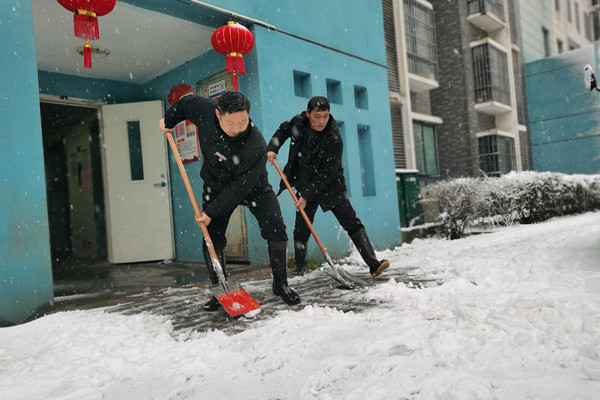一大早,在濱湖家園社區黨總支的號召下,小區主干道、樓棟門前、商業街區等地出現了一批“鐵鍬使者”,他們不顧天寒路滑,冒著凜冽寒風,拿上鐵鍬、掃帚,對轄區的各處積雪、冰凍進行鏟除。天氣雖然寒冷,但黨員志愿者們干勁十足,一邊掃著雪,一邊還不忘提醒著過路的行人注意安全。“積雪較厚的路面,如果不鏟除的話,行人容易滑倒,再一結冰就更難搞。我們小區有很多老年人居住,這大過年的萬一摔著可不得了。”黨員盛寶富說道。盡管大雪一直沒有停,大家還是冒雪干得熱火朝天,很快就在厚厚的積雪中間開辟出了一條寬敞干凈的路。