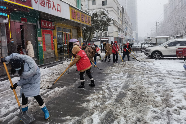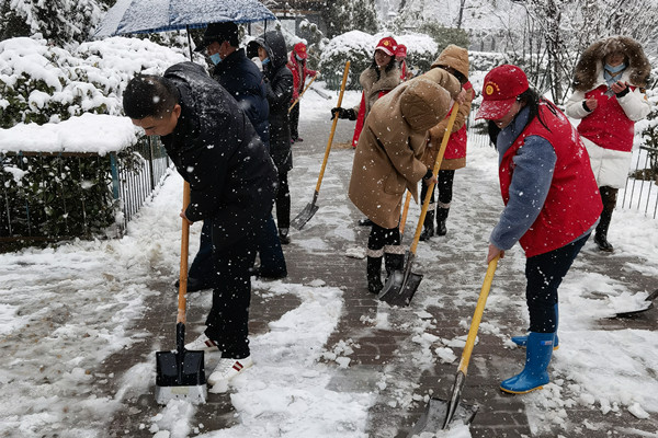 2月6日夜間開始,合肥突降大雪,瑞雪兆豐年,但也給居民的出行帶來了不便。2月7日早晨,煙墩街道欣園社區黨委組織黨員志愿者開展鏟雪除冰工作,助力居民安全出行。