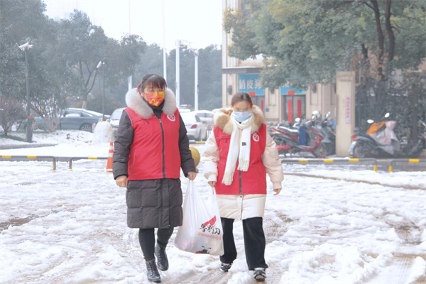 當走訪到未來領地公寓獨居老人梅英家中時,了解到生活物資需求后,志愿者迅速完成從挑選到配送的一條龍服務。每到一戶,志愿者都對他們噓寒問暖,詢問身體狀況和需求情況。臨走時再三囑咐老人,雪天路滑,天氣濕冷,最近幾天盡量待在屋內不外出走動,注意添衣保暖,注意用火、用電安全,有需求就撥打社區的便民服務電話,一定會及時幫助他們解決生活中遇到的實際困難。貼心的慰問,鼓勵的話語,讓他們感受到了溫情和暖意。老人們紛紛表示:感謝志愿者們不畏嚴寒,送來了問候和幫助,感謝黨委和社區一直想著我們,讓我們感受到了溫暖和關懷。