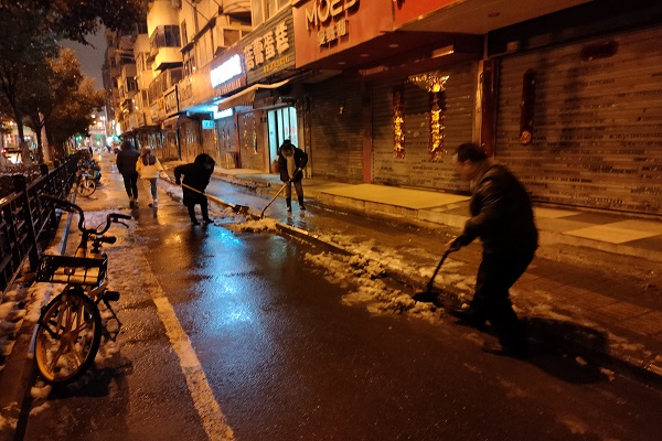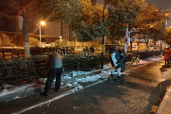 2月7日,合肥突降大雪,紛紛揚揚的雪花使得路面逐漸鋪上了厚厚的一層積雪,大雪一直持續到夜里也沒有停歇。這場雪給廣大居民群眾的生產生活帶來了極大的不便。為了保障廣大居民的日常出行,同安街道王大郢社區黨委第一時間組織社區城管辦、聯合社區其他部門和志愿者等30多人,緊張有序的投入到夜間鏟雪除冰工作中。