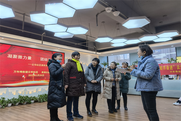 為進(jìn)一步促進(jìn)社區(qū)志愿者之間的交流與合作,增強(qiáng)志愿團(tuán)隊(duì)之間的凝聚力,提高他們的歸屬感,形成有效的志愿者互助減壓機(jī)制,萬(wàn)年埠街道云華社區(qū)黨委聯(lián)合公益組織于2月25日上午舉行了以“凝聚微力量、團(tuán)結(jié)齊奮進(jìn)”為主題的社區(qū)志愿者團(tuán)建活動(dòng),共20余人參與活動(dòng)。